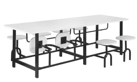 MESA DE REFEITÓRIO 8 LUGARES 2400X800X780MM COM BANCOS ESCAMOTEÁVEIS INDIVIDUAIS, TAMPO E BANCOS EM MDF DE 25MM, REVESTIDO EM FÓRMICA POST-FORMING 180 GRAUS, ESPESSURA 0,8MM, ESTRUTURA EM TUBO DE ACO 30X50MM E 1 1/4, ESPESSURA 1,2MM, COM PINTURA EM TINTA EPÓXI-PÓ, TRATAMENTO ANTIFERRUGEM E ANTICORROSÃO, PONTEIRAS INJETADAS EXTERNAS E INTERNAS